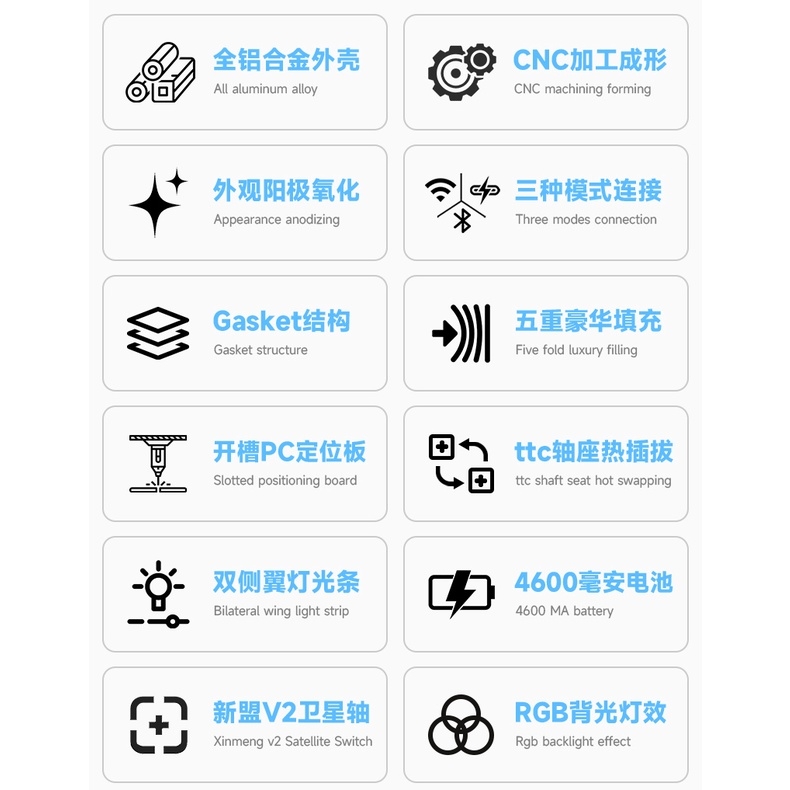 Bàn phím cơ Xinmeng XM M71 Nhôm CNC 3 Mode LED NỀN + VIỀN RGB Hotswap 5 pin Pin 4600 mAh
