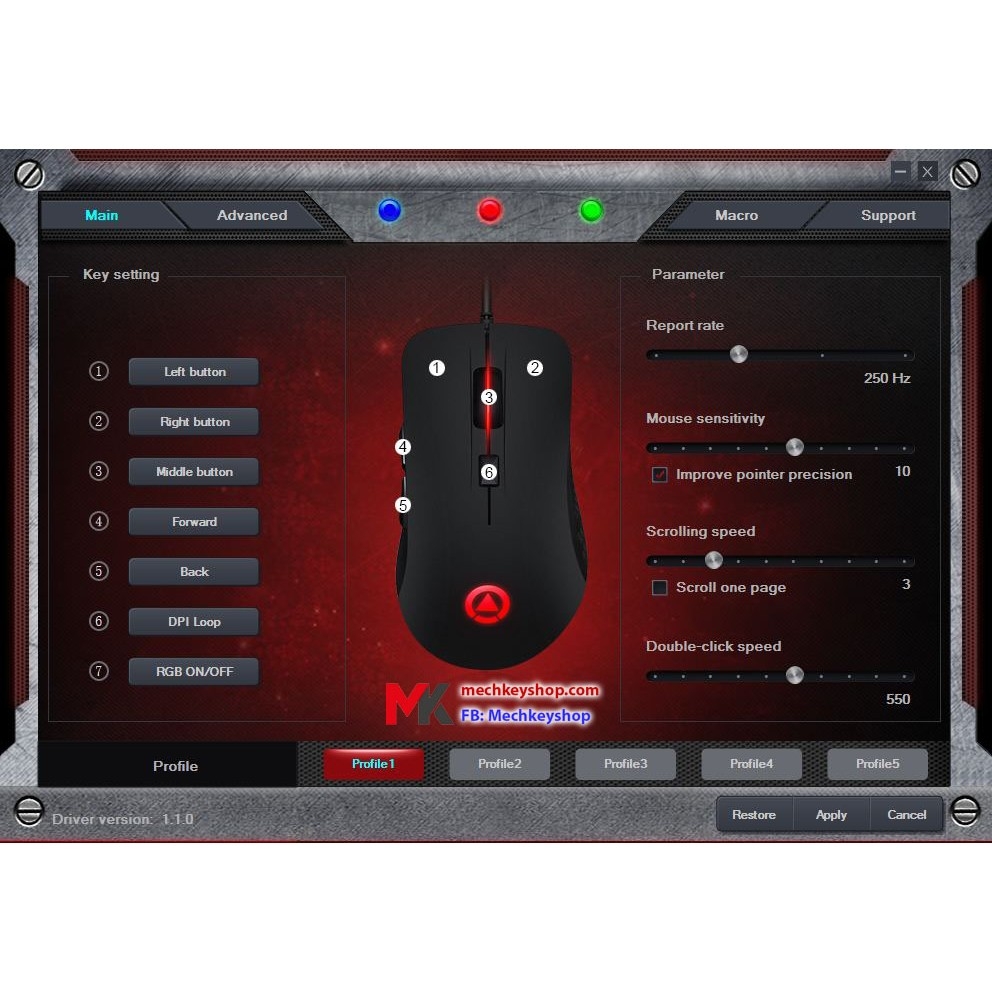 ***Silent click: bấm sẽ không ra tiếng, không có tiếng click Link tải phần mềm: https://my.pcloud.com/publink/show?code=XZ8BINZByefcLlLCI8Yn8cYN0q1hhELO5ek https://drive.google.com/open?id=0B_rPDx85k6EYdFIwMDJobExJaFU https://pan.baidu.com/s/1slEQDaP Chuột Langtu G402: Kích thước: 121x67x39mm 80 IPS Chuột được thiết kế cầm rất vừa tay. Sử dụng mắt đọc Avago 3050 cao cấp. 4 mức DPI lên tới 4000DPI (có thể tùy chỉnh bằng phần mềm) Đèn LED LOGO, con lăn RGB (có thể tùy chỉnh bằng phần mềm) Nút bấm chuột độ bền cao lên đến 10 triệu lượt bấm Dây chuột bọc dù, đầu USB mạ vàng, có chống nhiễu đảm bảo kết nối ổn định Chuột có 6 nút bấm tiện dụng, có thể đặt lại tùy theo nhu cầu sử dụng bằng phần mềm Phần mềm tiếng anh, thân thiện, dễ sử dụng Giá 250k, bảo hành 3 tháng, đổi mới trong tháng đầu #mkshop, #mechkeyshop, #langtu, #g402, #langtuG402, #rgb, #Avago30502