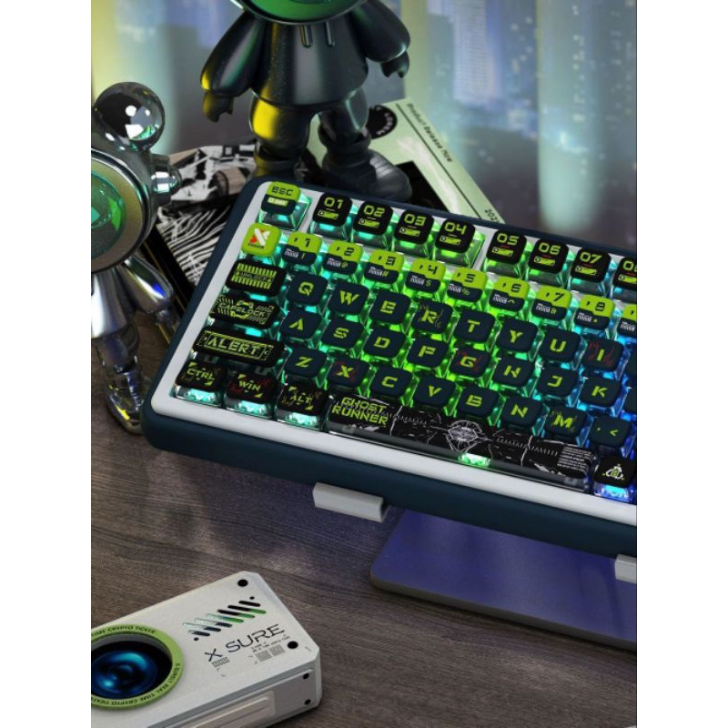 Keycap làm bằng nhựa PBT kết hợp với 4 cạnh làm bằng nhựa PC giúp xuyên led cạnh, tỏa sáng 4 cạnh.